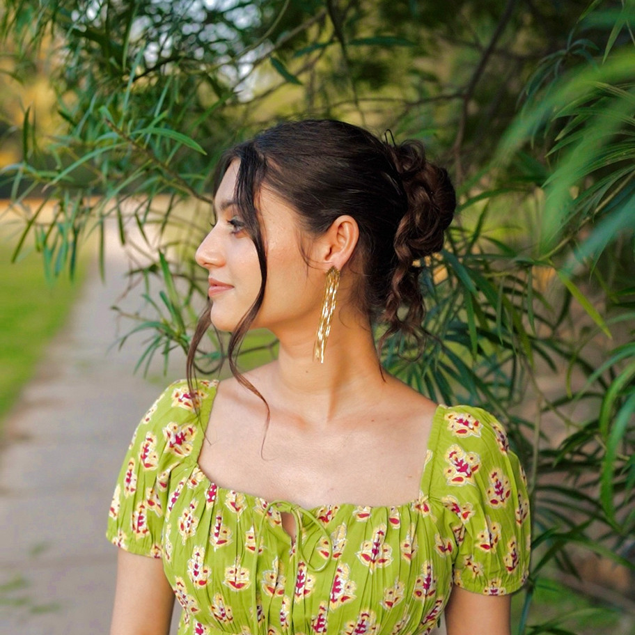 Step into a story of slow fashion and serene style with our Solene Midi Dress. This dress is a masterclass in romance, featuring a timeless milkmaid-inspired bodice and a sweeping silhouette that transitions effortlessly from morning strolls to evening soirées.
